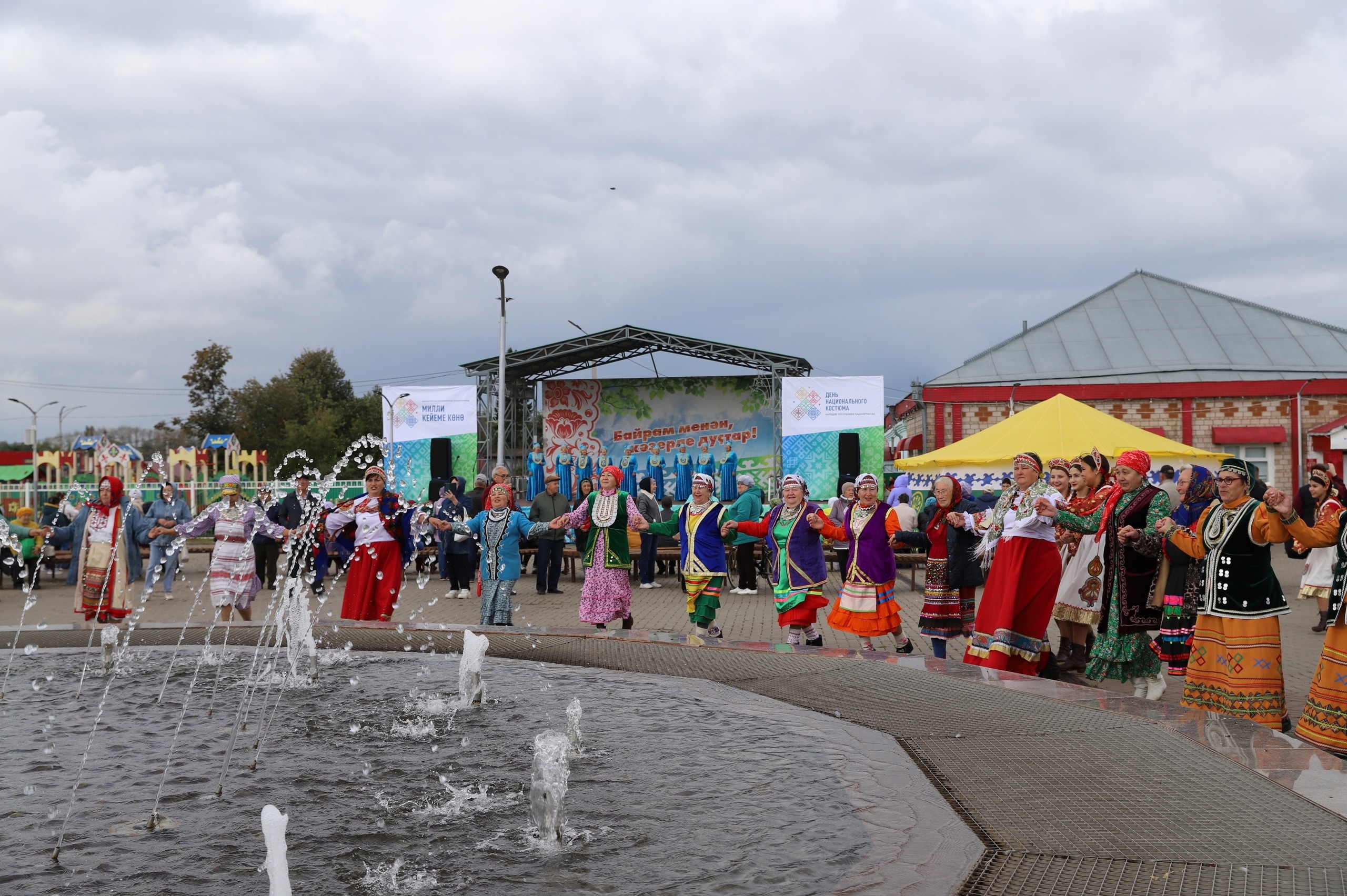 Главным событием дня стал Хоровод Единства объединивший всех участников вокруг фонтана - визитной карточки села Бураево.